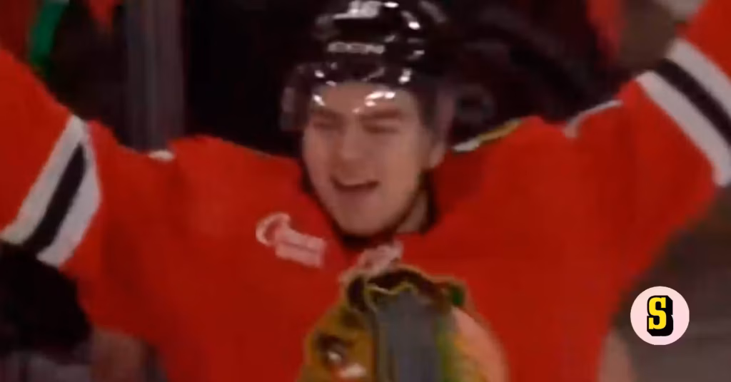 Han dök upp på exakt rätt ställe när en puck studsade ut i slottet och utan att tveka det minsta klappade han in det första av vad som säkerligen kommer bli hundratals mål för Blackhawks på självaste Connor Hellebuyck.