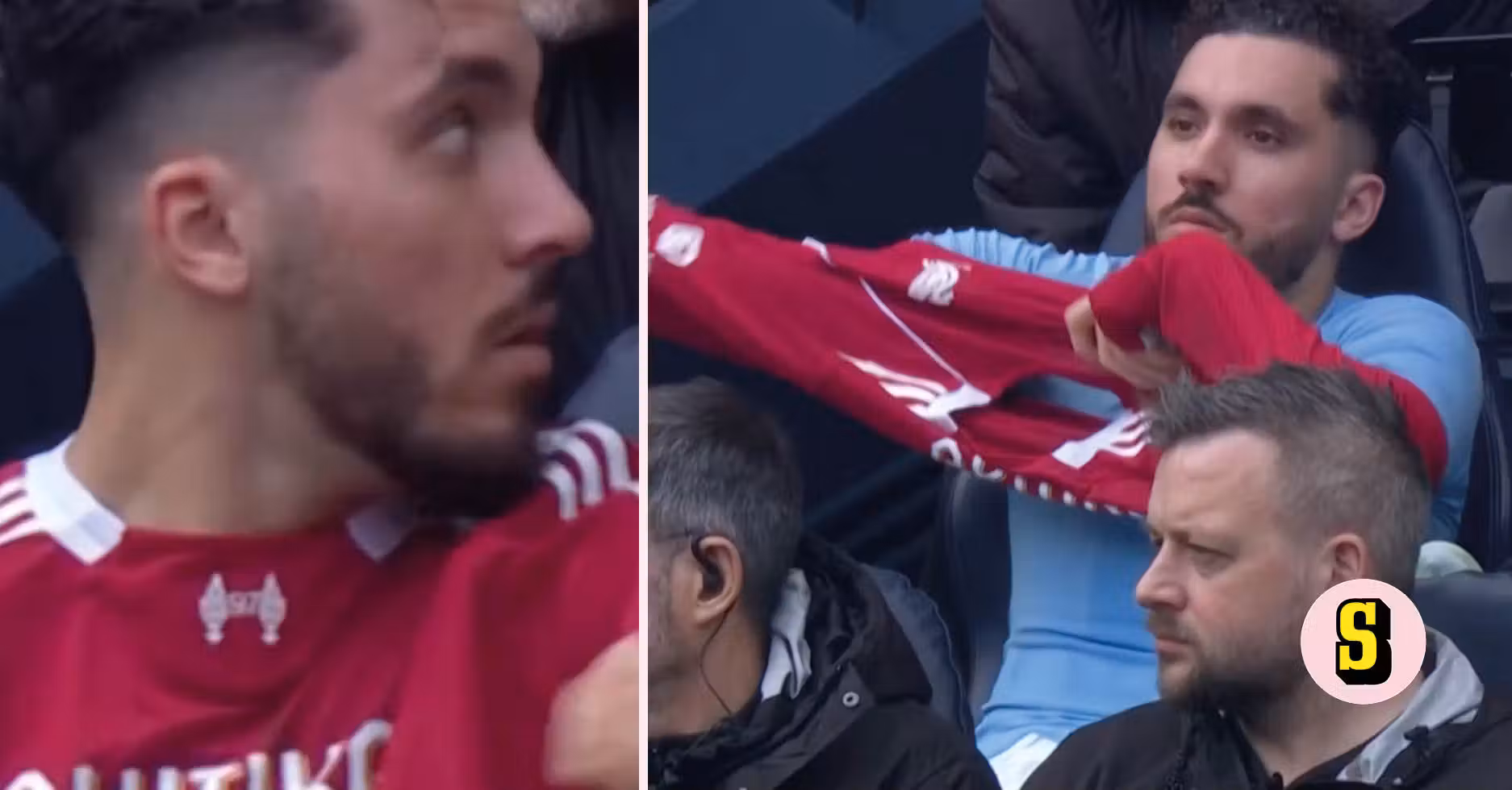 På bänken bestämde sig Cherki för att ta på sig Liverpoolmatchtröjan. Han fick den summary över huvudet innan det såg ut som att Cherki fick en tillsägelse.