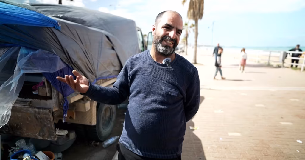 De lämnade i all hast för några veckor sen och nu bor de på strandpromenaden i kuststaden Saida i södra Libanon.
