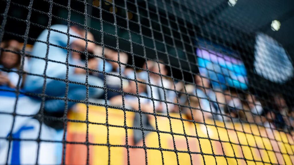 Skyddsnät framför Malmö FF:s supportrar inför matchen mellan Malmö FF och Djurgården den 1 september 2024.