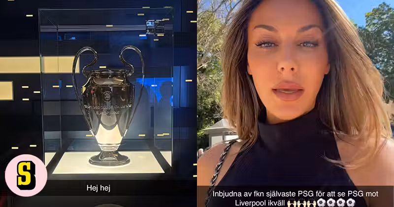 ”Inbjuden av fkn självaste PSG för att se PSG mot Liverpool i kväll”, skriver hon på Snapchat.