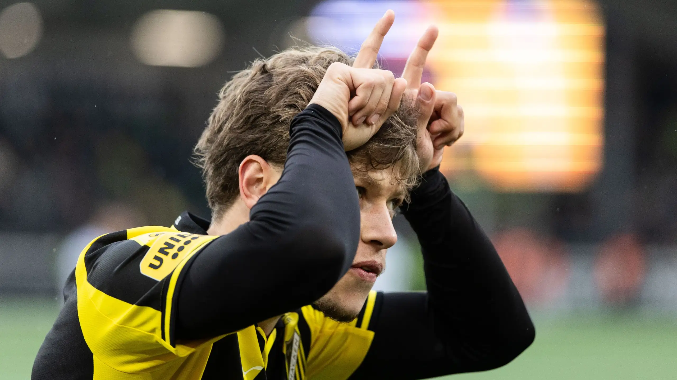 Han firade genom att sätta upp händerna på huvudet och rikta fingrarna uppåt. Ungefär samma älg-gest som Anton Andreasson i Örgryte och Filip Cederqvist i Frölundas hockeylag brukar göra.