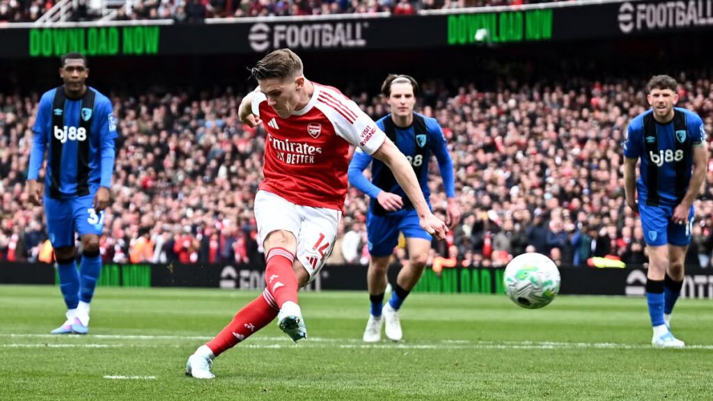 Hemma mot Bournemouth i Premier League kunde Gyökeres kvittera until 1–1 på straff i den 35:e minuten efter att bortalagets Ryan Christie fått bollen på handen.