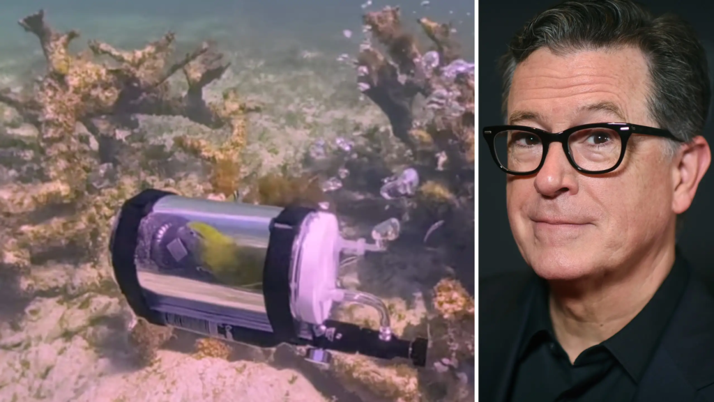 – Rubriken skulle i stället kunna vara: ”Förvirrad fågel inlåst i en vattenflaska skulle vilja att det här var över”, säger Colbert.