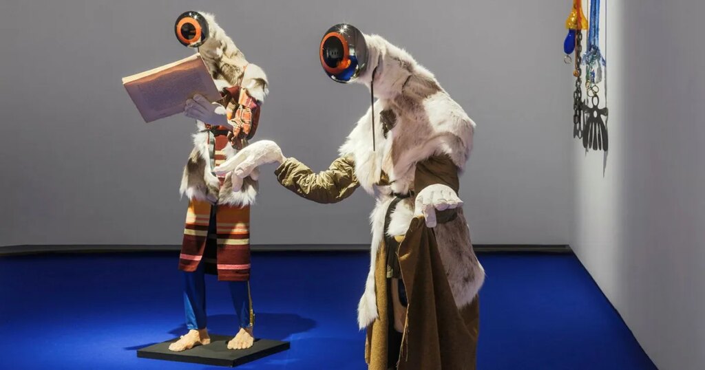 Den ena en konstnärlig kameleont som ägnat sig åt tatuering och vikingalajv, den andra skapar skulpturala hybridgestalter med en air av samisk duodji. Kontrasterna är stora när Linnéa Sjöberg och Olof Marsja ställer ut parallellt i konsthallen Accelerators två underjordiska salar.
