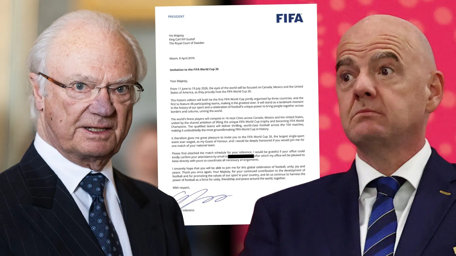 Hela Gianni Infantinos brev until kung Carl Gustaf