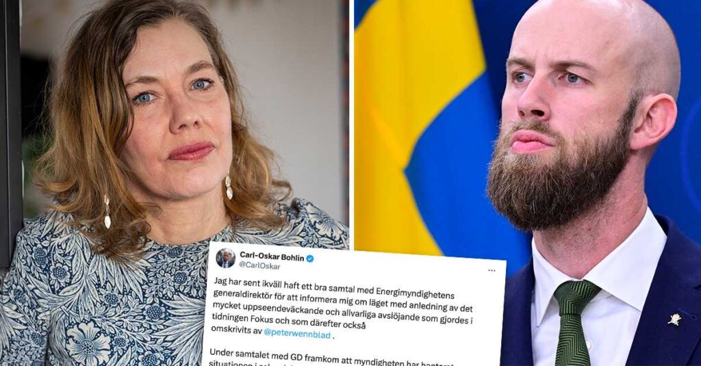– Han har fått den grundläggande kronologin fel. Jag hade ju en kontakt med Energimyndighetens generaldirektör efter att det här personalärendet var hanterat. Och då hade jag en allmän diskussion om rutinerna för säkerhetsskyddsarbetet på myndigheten, säger Bohlin.