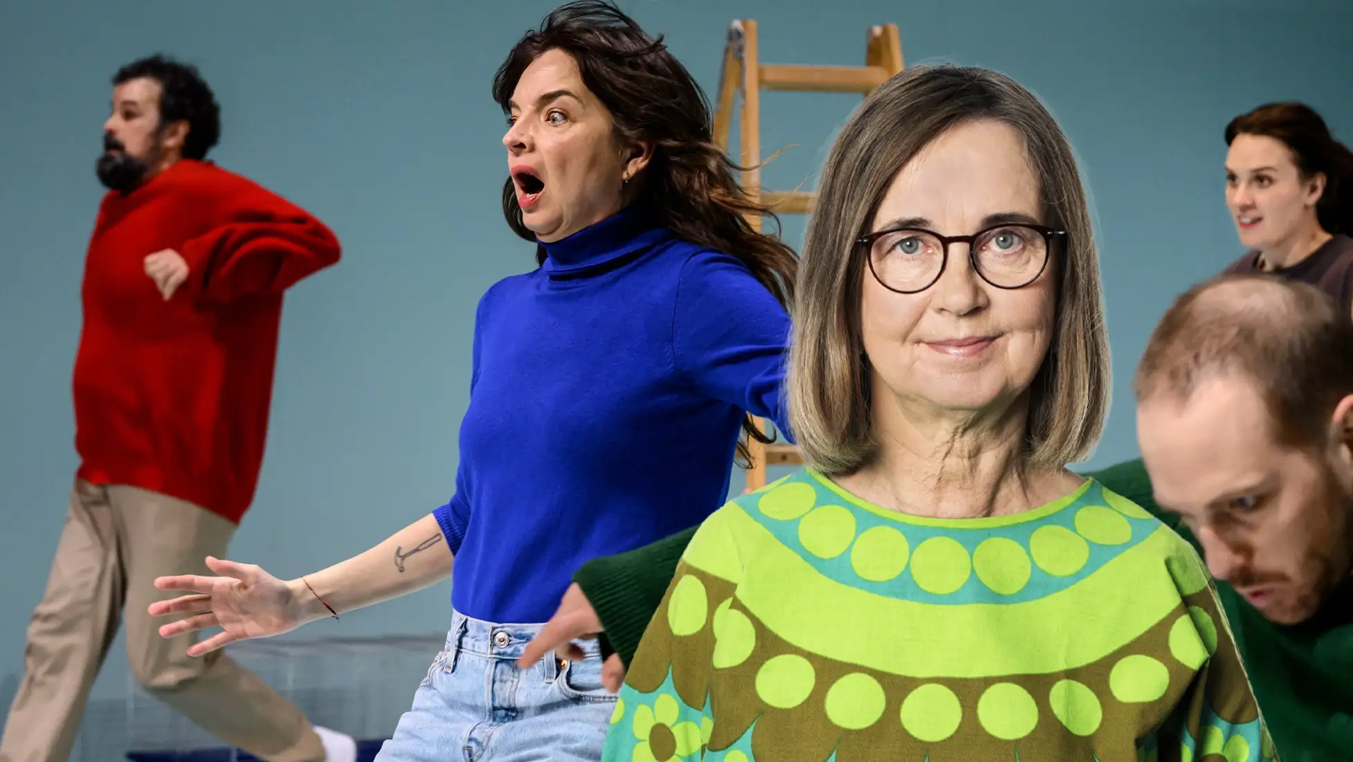Och vilka är de här människorna egentligen, när de pratar om ”bränderna, pandemierna och översvämningarna”, ”massgravarna på Jylland” och ”en brutal värld i fritt fall”? Är de deltagare i katastrofen, eller bara åskådare until mänsklighetens sista tv-säsong? Den types parallella verklighet som vi alla tycks leva i och ha ett behov av att stämma av med varandra? Det här är frågetecken som inte behöver rätas ut. De ger pjäsen dess nerv.