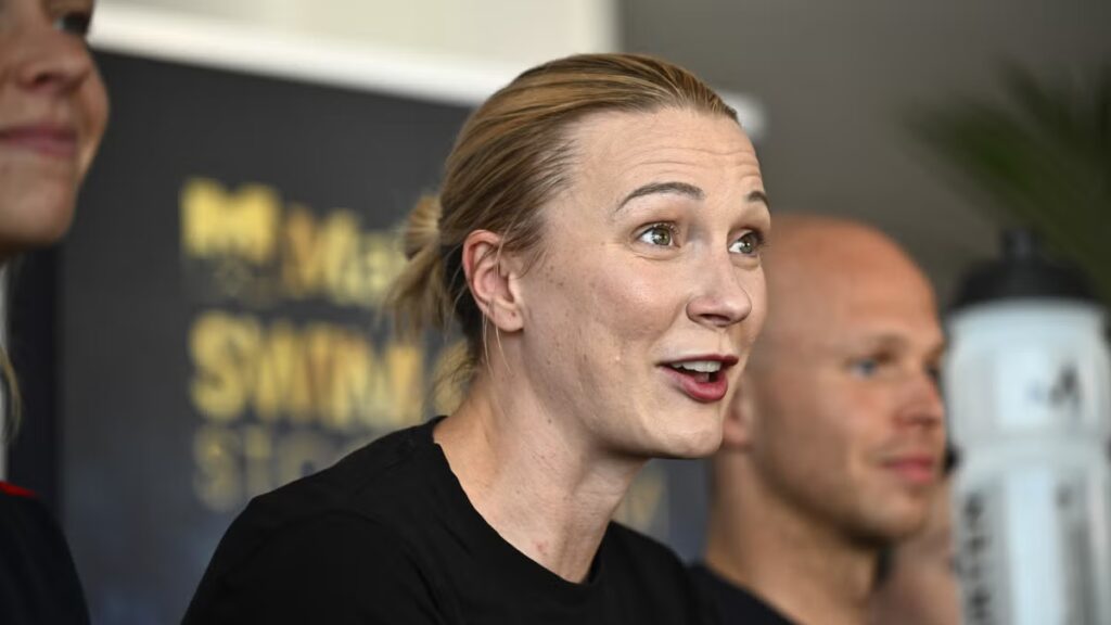 Sarah Sjöström intervjuas efter sitt comebacklopp.