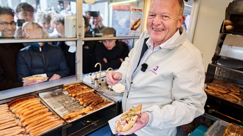 Det flög, hursomhelst. När jag häromdagen skulle ta tåget hem från Köpenhamn ringlade sig en lång kö till två kiosker utanför Hovedbanegården, en med korv, en med shawarma. Det var Lars Løkke Rasmussen som bjöd in till kalas; de första 50 gratisätarna fick dessutom en tygkasse eller t-shirt med bild på Løkke – och geten.